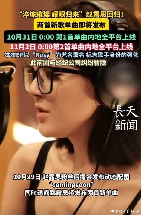 2025 年 10 月 29 日,赵露思粉丝后援会发布预告,宣布她即将推出两首全新单曲,标志着正式复出回归。
